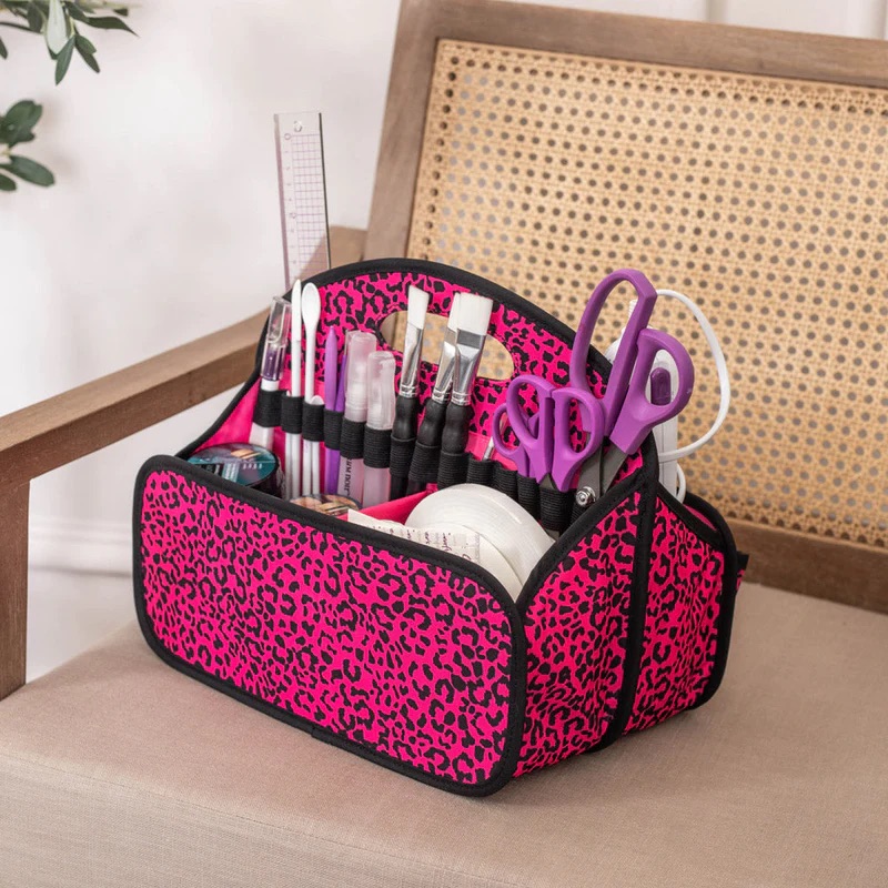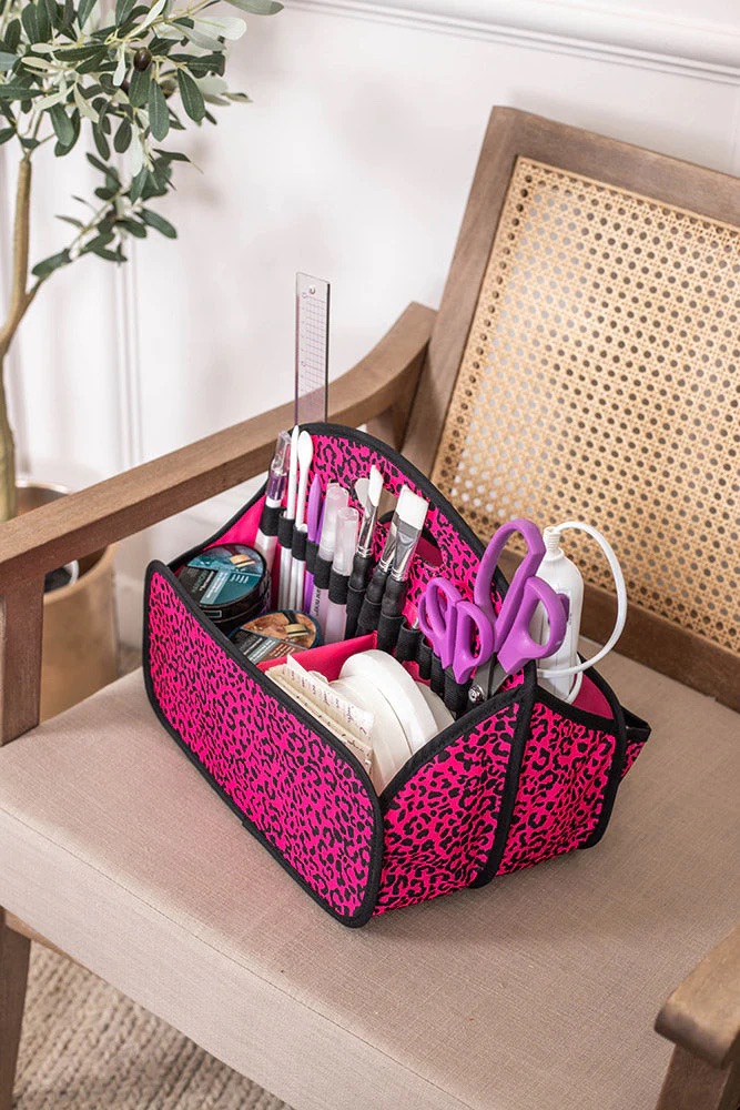Neem je spullen onderweg mee met de Crafter’s Companion Portable Tote in Raspberry Cheetah. Met het aanpasbare opberggedeelte en de stevige vakken kun je dus je onmisbare gereedschappen en materialen ordenen en opbergen, zodat ze zichtbaar en toegankelijk zijn. Een centrale draaggreep zorgt ervoor dat je hem kunt oppakken en wegbrengen als je klaar bent. Dus perfect voor workshops en knutselevenementen. En onze gloednieuwe, limited edition Raspberry Cheetah-print zal daarmee je knutseltafel opfleuren, waar je ook bent!