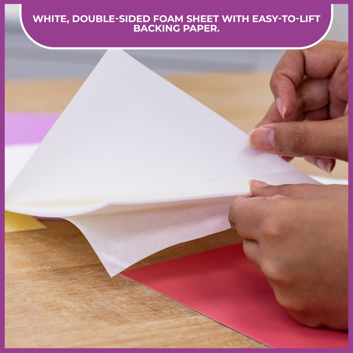Witte, dubbelzijdige foam vellen met makkelijk afpelbare papier laag. Deze bladen zijn een absolute musthave voor de serieuze kaartenmakers die veel werken met 3Dknipvellen, of in het algemeen veel gebruik maken van foampads!