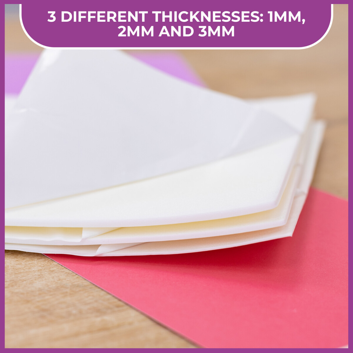 Bevat 5 foam vellen A4 in 3 verschillende diktes, 1mm, 2mm en 3mm.