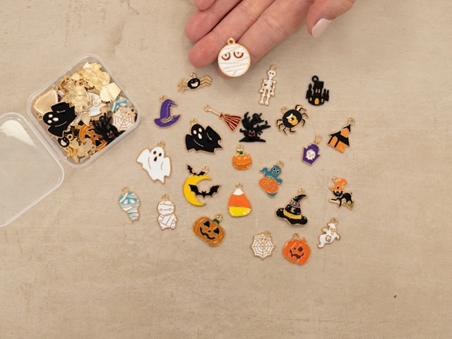 - Deze verpakking bevat 50 metalen halloween bedels.