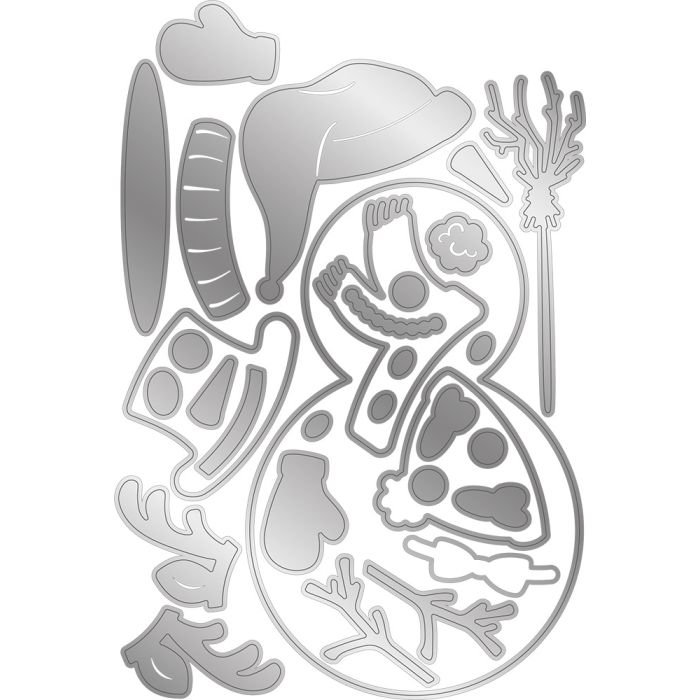 IJzig en zo leuk. De vrolijke sneeuwpopset bevat 29 stansen om een kaart in de vorm van een sneeuwpop uit te snijden, compleet met een reeks accessoires, waaronder hoeden, wanten, een wortelneus, een gewei, een vlinderdas, sjaal, bezem en meer! U kunt dus uw vormkaart uitstansen en de versieringen en details bevestigen om hem in uw eigen stijl daarmee aan te passen!