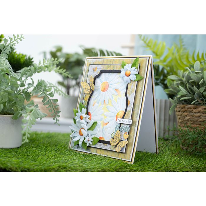 Je voelt je zo fris als een madeliefje met deze vrolijke collectie, die een volle weide van deze lieve kleine bloemen tot leven brengt door middel van delicate stansen, embossingfolders, bloemvormende sets en weelderig geïllustreerd paperpads en vellumblokken. En ongeacht de tijd van het jaar kunt u de warmte van lente en zomer nabootsen met een palet van fris wit, zonnegeel, grasgroen en korenbloemblauw.
