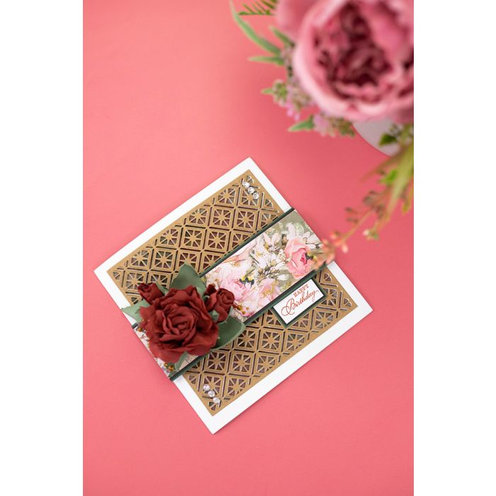 Breng tijdloze schoonheid en romantiek in je papercraft-projecten met de Nature’s Garden Nature’s Garden Vintage Rose – Snijmal – Diamond Trellis van Crafter’s Companion. Wilde, landelijke rozen bloeien over de pagina door prachtig geïllustreerde stempels, designpapier, delicate stansen en 3D-bloemen. Historische accenten en een warm en rustiek palet bieden daarmee het hele jaar elegantie voor kaarten, scrapbookpagina’s, huwelijkspapier en meer.