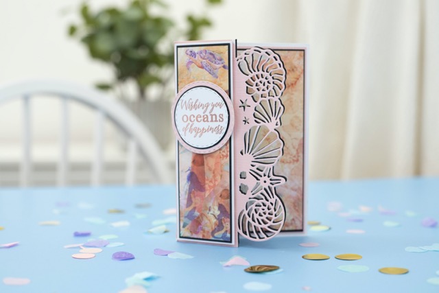 Neem je handgemaakte creaties mee op een zonovergoten avontuur naar het sprankelende water en de iriserende magie van de Sara Signature Enchanted Ocean-collectie van Crafter’s Companion. Fijne schelpen, kleurrijk koraal, schattige zeepaardjes en glinsterende zeemeerminnen drijven, spatten en springen daarmee over design paperpads, perkament, stempels, stansen en embossingfolders.