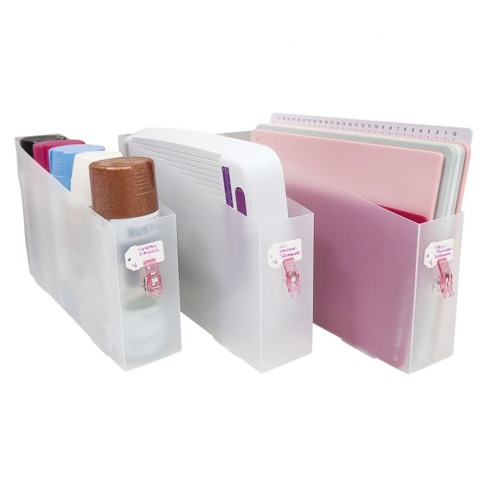 Ben je het zat om je inkten, sprays, lijmen en verf om te gooien terwijl je naar iets achter in de kast zoekt? De Slide, Stash & Store is daarop het antwoord!