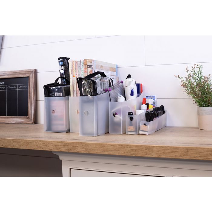 Het Slide, Stash en Store-assortiment is de perfecte manier om uw knutselcollecties in op te bergen. Dit zodat deze altijd zichtbaar en daarmee binnen handbereik zijn. Schuif dus eenvoudigweg de tray van de plank, berg uw hobbymaterialen en gereedschap hierin op en bewaar deze op een plank of uw werkplek!