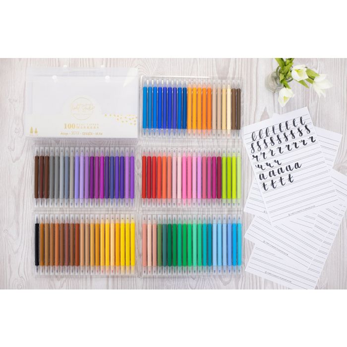 - Deze Pennen set bevat 100 markers met een dubbele punt (fijn en brush)