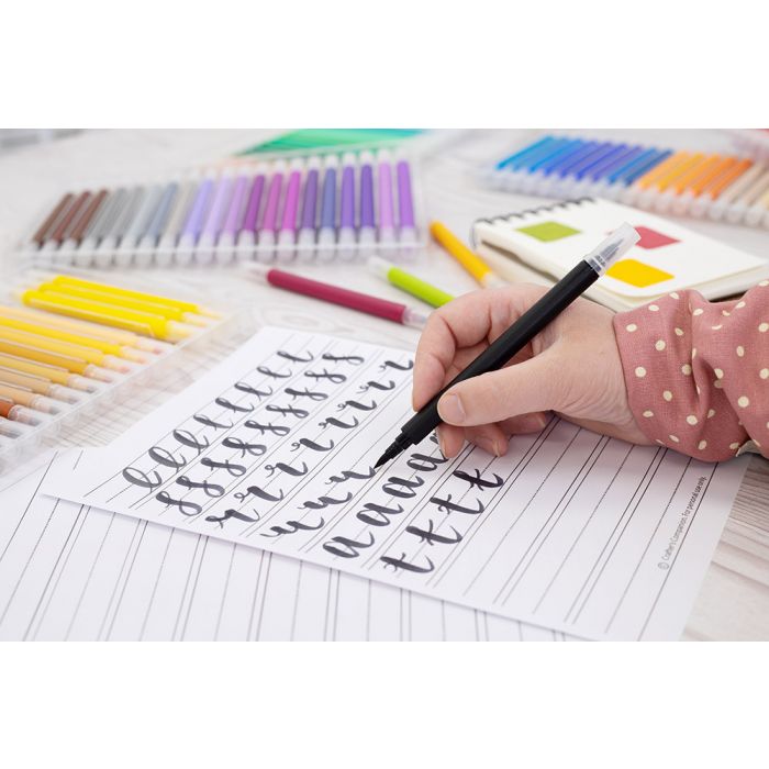 In deze handige draagtas zit een schat aan creatieve mogelijkheden met een breed spectrum van 100 verschillende kleuren in inkten op waterbasis.