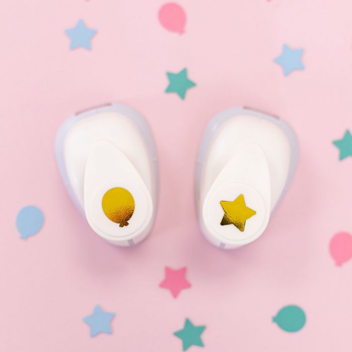 Stans schattige balon en stervormige stukken uit. Elke vorm meet slechts 1,5×1,5 cm, dus je kunt ze gebruiken als individuele decoraties voor kaarten en plakboekontwerpen. Of maak je eigen schattige confetti! Elke Violet Studio Mini Punch is zo gemakkelijk te gebruiken, druk op je vel papier en laat los om je uitgesneden vorm te onthullen!