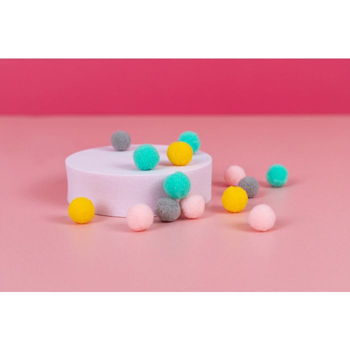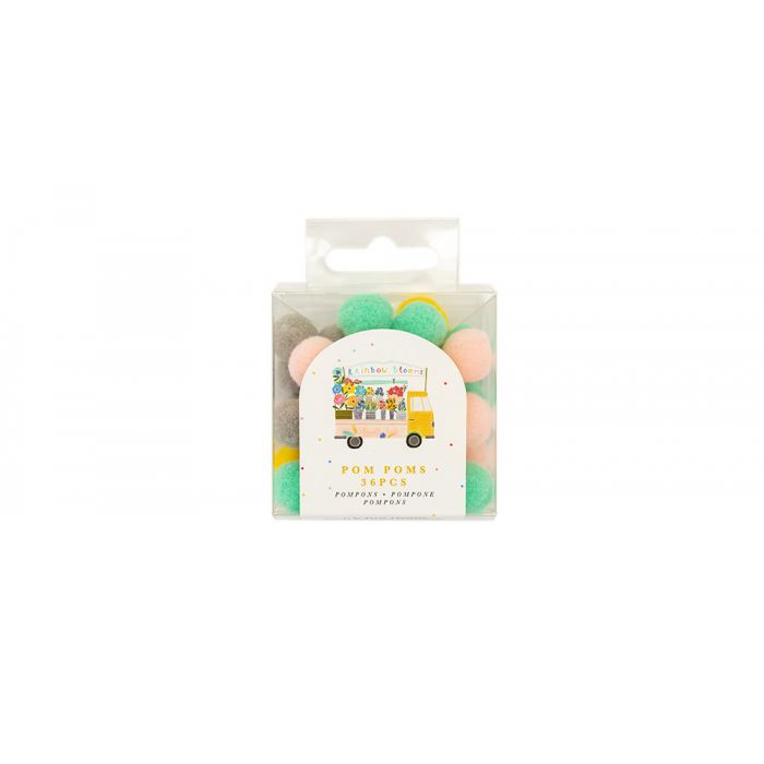 Het Rainbow Blooms Pom Pom Pack bevat 36 zachte pom poms in een warm pastel palet van pistache, blush roze, geel en grijs. Gebruik ze om wat extra textuur aan je creaties toe te voegen!